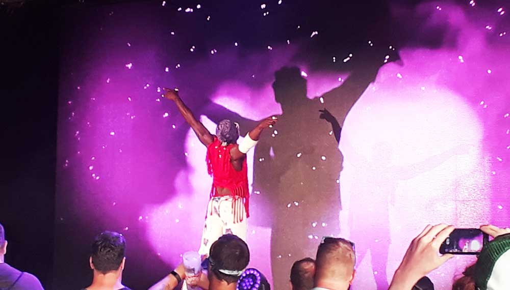 Another noticeable difference about the tent arena was due to the nature of the setup, the sound production was significantly different. Without the benefit of the typical acoustics an indoor venue would provide, and being limited for speaker placement, those tunes came flying at you pretty raw. What’s more, at a music festival, even though the stages are spaced a fair ways apart, you’re still competing to be heard by the most people possible and draw them in. As a result, whenever the first beat of Pete Dunne’s theme song hit, your bollocks flew across the bloody field.